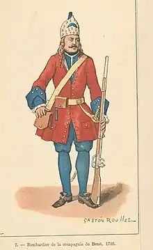 En France, le premier corps de troupe spécifique est créé en 1622 par le cardinal de Richelieu, sous le nom de « compagnies ordinaires de la marine ». Ces compagnies étaient théoriquement au nombre de cent, chacune avec pour capitaine un lieutenant de vaisseau et pour lieutenant un enseigne[2]. En 1626, Richelieu, nommé « grand-maître chef et surintendant de la navigation et du commerce », ordonne la fusion de ce qui reste des cent compagnies pour former le régiment de la Marine[3], dont le cardinal est maître de camp. Le régiment participe au siège de La Rochelle[4], mais est en partie détruit lors d'un naufrage ultérieur.