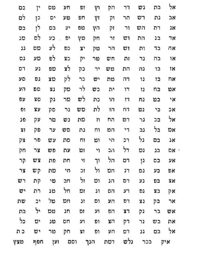 L’outil indispensable du tserouf ou « chiffrement « est la « Table d’Aboulafia »