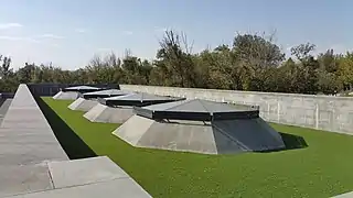 - douze stèles de granite sont disposées en cercle ; elles sont souvent et à tort considérées comme symbolisant les 12 provinces perdues, aujourd'hui turques, d'Arménie occidentale[2]. Au milieu, à 1,5 m de profondeur, la flamme éternelle est le lieu de recueillement. Tous les , des milliers de personnes y déposent une fleur ;