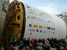 La machine qui perce le tunnel a été livrée en pièces détachées en pour un démarrage du creusement prévu initialement en . La facture de la livraison est de 184 millions d'euros. Ce tunnelier mesure 103 m de long et 10 m de diamètre. Il a été monté à l'air libre sur la base d'Ernolsheim-lès-Saverne en trois mois.
