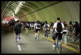 Le tunnel comportait à l'origine deux voies de circulation par sens, mais est réduit depuis 2013 à une seule voie de circulation par sens; les deux voies restantes de circulation ont transformées en piste cyclable.