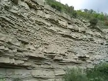 Ces roches sont le produit d'un écoulement de sédiments détritiques du haut vers le bas d'un talus continental sous-marin.