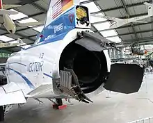 Par la suite, le développement continu des turboréacteurs devient un enjeu majeur aussi bien militaire que civil. Conçu par McDonnell Douglas, le F-4 Phantom II est l'un des avions militaires américains les plus importants du XXe siècle et l'avion de combat occidental ayant été le plus produit depuis la guerre de Corée. Mû par deux turboréacteurs General Electric J79, il est l'un des très rares avions à être réputé pour sa durée de vie et ses aptitudes en mission[14]. D'un point de vue civil, le De Havilland Comet est le premier avion commercial propulsé par des turboréacteurs. Lancé en 1949, il est resté célèbre pour une série d'accidents en vol qui a mis en évidence le phénomène de fatigue des structures dans l'aéronautique[15].