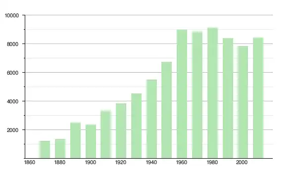 Lors du recensement de 2010, sa population s’élevait à 8 423 habitants[1]. La municipalité s'étend alors sur une superficie de 8,79 milles carrés (22,77 km2)[1].