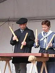 Une tradition musicale étroitement liée à l'instrument est relative à la production du cidre. Les planches du pressoir des cidreries basques ou sagardotegi ont été employées comme instrument de percussion en frappant la presse avec des bâtons cylindriques. Après que la fabrication du cidre fut finie, pour appeler les voisins à venir célébrer et boire du cidre, on frappait sur la presse[2].