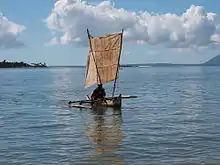 | Voile austronésienne. | Prao de Nouvelle-Calédonie avec sa voile austronésienne typique |