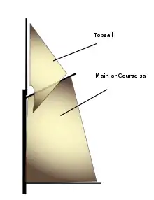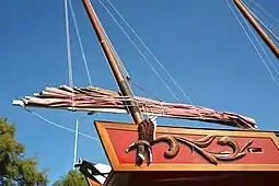 Dans la partie supérieure peut être gréé un flèche, ce qui permet d'augmenter la voilure, notamment par petit temps.