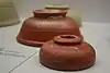 | Drag. 17 | Concavité sur le rebord vertical. Pas de moulure en quart-de-rond à la jonction interne du fond et du rebord. La lèvre et le bas du rebord sont parfois guillochés. Le fond porte toujours une estampille généralement épigraphique au centre de plusieurs cercles, dont un est souvent réalisé à la molette[15]. | Lezoux : phase 2[15]. | Goudineau 26[13],[n 1]. Lez. 62[15]. | Plat 2 du service II de Haltern par Loeschcke[13]. Il peut être associé au Ritt. 5 dans un service[15]. | ||