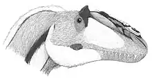 Des crêtes osseuses sont présentes sur les crânes de beaucoup de théropodes, dont de nombreux Tyrannosauroidea. La plus élaborée se trouve chez Guanlong, où les os du nez supportent une unique et grande crête qui longe la ligne médiane du crâne d'avant en arrière. Cette crête est perforée par plusieurs grands foramina (trous) qui réduisent son poids[3]. Une crête moins importante se retrouve chez Dilong, où des petites arêtes parallèles courent de chaque côté du crâne, soutenues par les os du nez et les os lacrymaux. Ces arêtes se courbent vers l'intérieur et se rejoignent juste derrière les narines, donnant à la crête une forme de Y[2]. Les naseaux fusionnés des tyrannosauridés sont souvent très rugueux. Alioramus, genre possible de tyrannosauridé de Mongolie, porte une unique rangée de cinq bosses osseuses importantes sur les os du nez ; une rangée similaire de bosses beaucoup plus petites est présente sur le crâne d'Appalachiosaurus, ainsi que sur quelques spécimens de Daspletosaurus, d'Albertosaurus, et de Tarbosaurus[7]. Chez Albertosaurus, Gorgosaurus et Daspletosaurus, une corne proéminente est présente en face de chaque œil sur l'os lacrymal. Cette corne lacrymale est absente chez Tarbosaurus et Tyrannosaurus, qui ont à la place une crête en forme de croissant derrière chaque œil sur l'os postorbitaire[1].