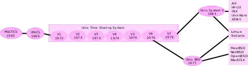 - (en) Unix History - Historique graphique des systèmes d'exploitation Unix