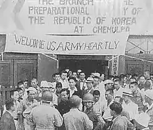 À la suite de la reddition du Japon le et pour assurer la sécurité des Japonais, le général Nobuyuki Abe, dernier gouverneur-général de Corée, choisit de transférer son pouvoir à Yeo Un-hyeong, un chef de la résistance, gauchiste modéré, qui forme d'abord le « comité pour la préparation de l'indépendance coréenne (ko) » (CPIC) puis proclame l'établissement de la république populaire de Corée (RPC) dont il devient le vice-premier ministre[3],[2]. Assurant son pouvoir par l'intermédiaire de comités populaires dans toutes les localités de la péninsule, ouverte à tous les Coréens à l'exception des collaborateurs, soutenue par le peuple car elle propose la confiscation des propriétés des colonisateurs ainsi qu'une redistribution des terres, contrôlant le commerce du riz et les entreprises des Japonais, cette organisation a la main sur la Corée lorsque les Américains arrivent[6].