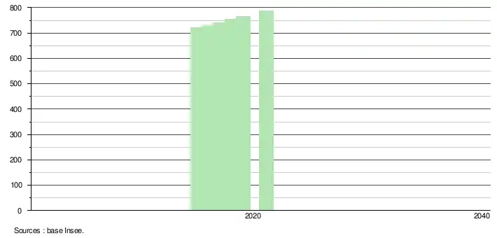- Population municipale légale en vigueur au 1er janvier 2024, millésimée 2021, définie dans les limites territoriales en vigueur au 1er janvier 2023, date de référence statistique : 1er janvier 2021.