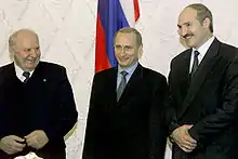 Le , un accord fut signé par Loukachenko et Eltsine afin de créer la Communauté de la Russie et de la Biélorussie[18]. Les parties ont alors convenu de créer une communauté politique et économique entre la Russie et la Biélorussie pour harmoniser les questions politiques et économiques entre les deux pays[19] ainsi que mettre les ressources et la capacité intellectuelle des deux États au service l'un de l'autre afin de garantir le redressement économique : « La création de conditions égales pour améliorer la vie des peuples et leur développement spirituel ».