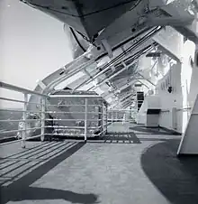 Le navire peut transporter un peu moins de 2 000 passagers pour un équipage de 1 000 personnes, mais il est conçu pour transporter plusieurs milliers d'hommes en cas de conflit[25]. Il arbore deux cheminées rouges à manchette bleue et blanche, les couleurs des United States Lines[26].