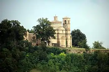 La ville domine un paysage vallonné, sur les contreforts du massif des Apennins, à la jonction des Marches, de l'Ombrie et de la Romagne[3].
