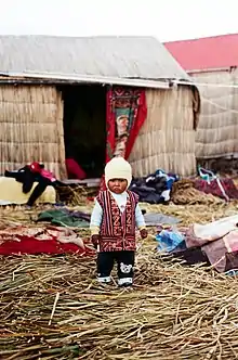 Installés à six kilomètres de la ville de Puno, les Uros vivent sur un archipel d'îles flottantes qui se situe entre 60 et 120 îles (ce nombre varie constamment). Ils ont créé les îles à partir de totora, une espèce locale de roseau. Toutes les habitations, mobiliers et embarcations étaient fabriquées à partir de ce matériau. Jean Raspail et Jehan Albert Vellard, explorateurs français, ont rencontré les derniers Uros non encore acculturés en 1954 : ils décrivent leur mode de vie, leur savoir-faire et leur économie, basés sur le totora. Aujourd'hui, leurs descendants devenus Aymaras utilisent et entretiennent les anciennes îles Uros à des fins touristiques, se servant des ouvrages comme ceux de Raspail et Vellard pour faire revivre les anciennes traditions, mais à une échelle supérieure : des séries de bungalows et de gros catamarans en totora accueillent et promènent désormais les touristes.