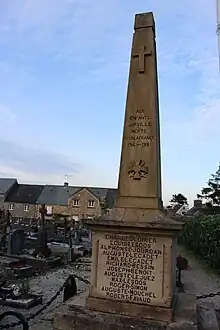 De l'église Saint-Martin, construite en 1812[3], il ne subsiste que son clocher octogonal au milieu du cimetière, la nef ayant subi des bombardements en 1944 et s'étant effondrée après le passage des chars américains qui traversaient le bourg à la fin du mois de . Au-dessus de l'entrée du clocher-porche est conservé un bas-relief une charité de saint Martin.