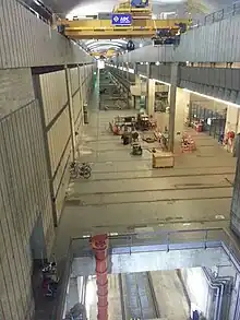 Durant les deux premières années, les travaux visent à créer une zone sèche où l’usine pourra être construite. Pour cela, deux batardeaux provisoires sont créés de part et d’autre du site actuel de l’usine. Ils sont composés de gabions de palplanches ancrés sur des caissons circulaires en béton armé de 19 m de diamètre conçus par l'ingénieur Albert Caquot[9]. La construction de l'usine proprement dite débute le , une fois la Rance entièrement coupée par les batardeaux. Les travaux durent trois ans et s’achèvent en 1966. Charles de Gaulle, président de la République française, inaugure l’usine le [10]. L’inauguration de la route franchissant l’usine a lieu le et le raccordement au réseau électrique (EDF), le [11]. Au total, l’usine a coûté à l’époque 620 millions de francs (ce qui correspond à environ 817 millions€ de 2016)[12].