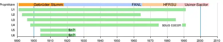 En 1919, après la première Guerre mondiale, l'usine est placée sous séquestre, puis devient, avec les concessions minières des frères Stumm, la propriété des Forges et Aciéries du Nord et de Lorraine (FANL)[note 2]. Par suite de conventions juridiques, Uckange conserve des liens avec l'usine sarroise de Neunkirchen[3],[4], bien que le nouveau propriétaire fait table rase de la gestion allemande, reconstruisant les bureaux, détruisant les archives, et passant d'une numérotation des hauts fourneaux en chiffre romains à une appellation alphabétique (la dernière numérotation, en chiffre arabe, date de 1930)[2].