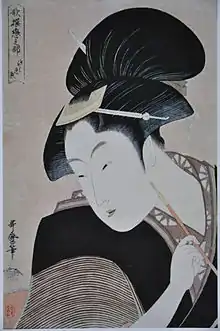 Kitagawa Utamaro[1] (喜多川 歌麿) v. 1753 - est un peintre japonais, spécialiste de l'ukiyo-e. Il est particulièrement connu pour ses représentations de jolies femmes (bijin-ga), mais son œuvre comprend également de nombreuses scènes de nature et d'animaux, ainsi que des albums érotiques (shunga).