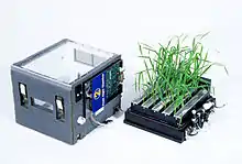 La serre spatiale SVET-2 mise en place en 1997 à bord de la station spatiale Mir a permis d'observer la croissance de plantes à partir de graines[3]. Le satellite Bion 5 (en), consacré aux expériences biologiques, a emporté des graines de Daucus carota et Bion 7 a emporté du maïs. À bord de la Station spatiale internationale l'expérience de culture de plantes Biomass Production System a été suivie de VEGGIE (Vegetable Production System)[7]. Les plantes testées dans VEGGIE comprenaient la laitue, le cardon, les radis, le chou chinois et les petits pois[8]. Une expérience à bord de la station spatiale Skylab a étudié les effets de la gravité et de la lumière sur les plants de riz[9],[10]. Dans une expérience, des racines de fleurs ont grandi normalement malgré l'absence de gravité[11].