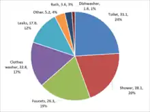 Les quantités moyennes approximatives d'eau appliquées à des fins spécifiques doivent être estimées, parce que seule l'utilisation totale des clients résidentiels est mesurée et enregistrée pour des périodes d'un mois ou plus (bien que les technologies AMR et de compteurs avancés permettent des lectures plus fréquentes)[2]. Aux États-Unis, une compilation à l'échelle nationale de ces quantités mesurées par Institut d'études géologiques des États-Unis (United States Geological Survey - USGS) montre que les livraisons d'eau domestiques moyennes (à l'intérieur et à l'extérieur) par les fournisseurs d'eau aux habitations unifamiliales et multifamiliales, étaient d'environ 89 gallons (337 litres) par personne et par jour en 2010[3] et 83 gallons (314 litres) en 2015[4]. Depuis le début des années 1980, l'intérêt croissant du public pour la conservation de l'eau a suscité des questions sur les comportements des consommateurs en matière d'utilisation de l'eau et sur quantités moyennes d'eau utilisée pour chaque usage domestique[5],[6],[7],[8] . Au milieu des années 1990, la première étude nationale sur les utilisations résidentielles de l'eau a été réalisée aux États-Unis en acquérant des données haute résolution directement à partir du compteur d'eau du client et en analysant les traces d'écoulement (flow traces)[9],[10]. Plusieurs études détaillées des utilisations finales domestiques de l'eau en Amérique du Nord et ailleurs l'ont suivie. En 2016, une étude de mise à jour des utilisations finales résidentielles en eau, parrainée par la Water Research Foundation (en) (WRF), a été achevée et constitue la plus récente source de données sur les divers usages de l'eau résidentielle, décrits ici[11].