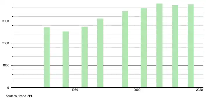 L'évolution du nombre d'habitants est connue à travers les recensements de la population effectués dans la commune depuis 1971. À partir de 2006, les populations légales des communes sont publiées annuellement par l'Insee, mais la loi relative à la démocratie de proximité du a, dans ses articles consacrés au recensement de la population, instauré des recensements de la population tous les cinq ans en Nouvelle-Calédonie, en Polynésie française, à Mayotte et dans les îles Wallis-et-Futuna, ce qui n’était pas le cas auparavant[4]. Pour la commune, le premier recensement exhaustif entrant dans le cadre du nouveau dispositif a été réalisé en 2002[5], les précédents recensements ont eu lieu en 1996, 1988, 1983, 1977 et 1971.
