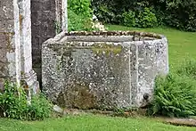 Elle orne une fontaine monumentale, qui ressemble à une cheminée, ouverte sur le devant et les côtés, portant, gravé sur les quatre faces, le texte suivant : « Érigée à Vénus par Caïus Julius Cesar ; Vénus, oracle des Armoricains, Jules César étant chef, Caius Claudius Marcellus et Lucius Cornelius Lentulus consuls, l'an de Rome 705. Soit six ans avant Jésus Christ; César, après avoir soumis toute la Gaule et pris le titre de dictateur, après avoir passé dans la Bretagne, non seulement se couronna lui-même par ses victoires, mais couronna sa patrie avec lui ; Pierre, comte de Lannion, ayant arraché à la superstition cette divinité païenne, vénérée jusque-là par les peuples, ordonna quelle fut placée en ce lieu. L'an du seigneur 1696. »[10], dans le parc du château, dont l'eau coulait dans une auge en granite monolithique d'environ 3 500 litres (2,10 m de long, 1,80 m de large, 1,10 m de haut), à la paroi avant très fine, provenant, elle aussi, de Castennec. De par sa forme, il est possible que cette auge ait probablement été l'ancienne niche dans laquelle était présentée primitivement la statue.