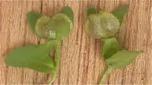 Le fruit est une capsule plus large que longue, en forme de cœur et légèrement velue.
