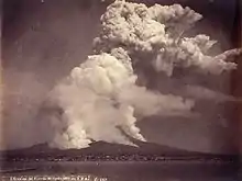 L'éruption de 1906, efficacement décrite par Frank Alvord Perret et Matilde Serao, a été la plus importante survenue au cours du XXe siècle. Il est encore difficile d'établir exactement le volume d'éjecta. Une immense coulée de lave qui prenait la direction de Torre Annunziata a été miraculeusement stoppée par les murs du cimetière[18]. Le une infiltration aquifère dans la chambre magmatique a provoqué la vaporisation violente de l'eau au contact du magma et entraîné, dans l'ultime heure d'activité, une série d'explosions violentes et un abaissement du sommet de 220 mètres[19]. L'effondrement du toit de l'église de San Giuseppe Vesuviano, causé par la pluie de cendres, a tué les 105 personnes qui s'y étaient réfugiées pour prier[20].