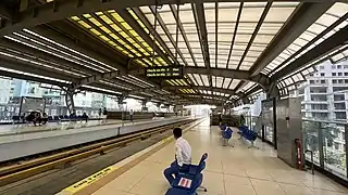 La station est accessible, au niveau du sol, par des escaliers et des escaliers mécaniques et un ascenseur pour les personnes en situation de handicap. C'est au premier niveau que l'on trouve les bornes pour l'achat de titres de transports et les Portillon d'accès pour la validation des billets. Au deuxième niveau on accède deux quais latéraux par les mêmes moyens que pour l'accès au premier niveau[3].