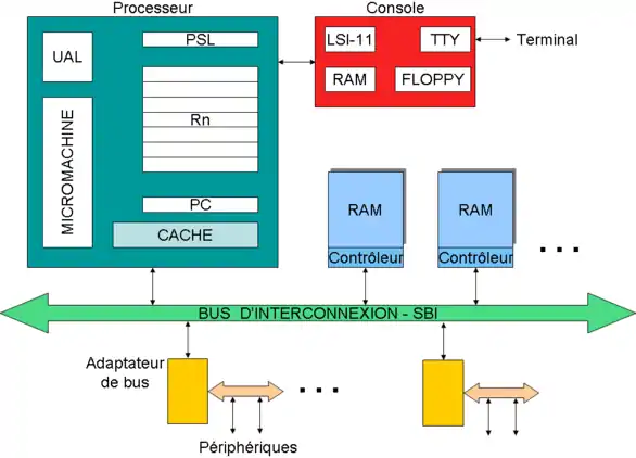 - Un sous-système basé sur un LSI-11 pour servir de console.