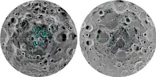 L'axe de rotation de la Lune est pratiquement perpendiculaire au plan de l'écliptique (à la direction du Soleil) : son inclinaison est de seulement 1,5° alors que l'axe des pôles de la Terre est incliné de 23,5°. En conséquence le rayonnement solaire est toujours rasant dans les régions polaires de notre satellite et les reliefs créent des zones en permanence à l'ombre (notamment les fonds des cratères) dans lesquelles la température se maintient en dessous de 0°C. Le pôle sud de la Lune se caractérise par des reliefs particulièrement importants (Bassin Pôle Sud-Aitken) multipliant les sites situés dans une ombre perpétuelle[2].