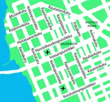 Cinq rues sont des esplanades d'une largeur de 35,6 mètres : Hovioikeudenpuistikko, Vaasanpuistikko, Korsholmanpuistikko, Kirkkopuistikko et Kauppapuistikko. L'ensemble des cinq rues forment un site culturel construit d'intérêt national en Finlande[17].