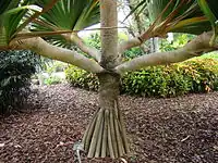 - le tronc n’a pas de cambium, couche de cellules méristématiques responsables de la croissance radiale. La croissance se fait en rajoutant de nouvelles racines aériennes et de nouvelles branches à partir de la base de la plante. Cela dit, certains botanistes réputés parlent quand même d’« arbre » pour le vacoa, comme les auteurs de la Flore des Mascareignes Vol 190