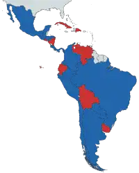 Au Paraguay, le Parti Colorado conservateur dirige le pays pendant plus de soixante ans, y compris durant la dictature d'Alfredo Stroessner soutenue par les États-Unis[44],[45],[46],[47], qui a duré 35 ans, de 1954 à 1989. Le Paraguay est l'un des pays les plus pauvres d'Amérique du Sud. Ce système de parti dominant (es) est temporairement brisé lors des élections présidentielles de 2008, lorsque la quasi-totalité de l'opposition réunie au sein de l'Alliance patriotique pour le changement réussit à faire élire l'ancien évêque Fernando Lugo du Parti démocrate chrétien au poste de président du Paraguay. Le gouvernement de Lugo est salué pour ses réformes sociales, notamment les investissements dans le logement social, l'introduction de traitements gratuits dans les hôpitaux publics, l'introduction de transferts en espèces pour les citoyens les plus pauvres du Paraguay et les droits des indigènes[48],[49],[50],[51],[52].
