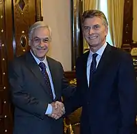 En Argentine, l'élection de Mauricio Macri en novembre 2015 en tant que président de l'Argentine a porté au pouvoir un gouvernement de centre-droit (par rapport au gouvernement de gauche des années passées), bien que les mouvements traditionnels du péronisme et du kirchnérisme (ainsi que la popularité de la dirigeante de ce dernier, Cristina Fernández de Kirchner) aient conservé le pouvoir face à l'opposition[6],[7]. L'ingénieur et ancien chef du gouvernement de la ville autonome de Buenos Aires entreprend des réformes conservatrices, telles que la réduction des subventions énergétiques (es) et la fin du contrôle des changes. En octobre 2017, Mauricio Macri consolide son pouvoir lorsque les candidats de son parti remporte des victoires aux élections législatives de 2017[8]. Une série de scandales de corruption implique le président Macri et ses alliés au cours de son mandat présidentiel (es), y compris six enquêtes fédérales pour blanchiment d'argent, trafic d'influence et augmentation illégale de la richesse de sa famille. Il est également impliqué dans le scandale des Panama Papers[9],[10],[11]. En 2017, la réforme des retraites de M. Macri se heurte à des manifestations massives soutenues par l'opposition, que certains membres de la presse ont décrites comme les manifestations les plus violentes à Buenos Aires depuis des décennies[12],[13]. Une partie des médias accuse le gouvernement Macri de brutalité policière et de violence excessive lors de ces manifestations[14],[15].