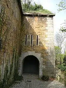 La limite du bourg avec Lyon se concrétise au début du XIIIe siècle : l'archevêque et comte de Lyon[n 5], pour défendre l'entrée nord de sa ville, fait bâtir sur le promontoire rocheux qui dominait la voie romaine, une forteresse, le château de Pierre Scize ; au pied de cette place forte, la porte de la ville est placée sur l'étroit défilé de Pierre Scize[27]. À partir de 1312 et l'intégration de Lyon dans le royaume de France, c'est là que les souverains sont le plus souvent accueillis et les simples sujets contrôlés. Sur la Saône, des chaînes limitent le passage des embarcations. Louis XI s'approprie la forteresse et en fait une prison d'État.