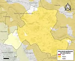Le retrait-gonflement des sols argileux est susceptible d'engendrer des dommages importants aux bâtiments en cas d’alternance de périodes de sécheresse et de pluie. 84,2 % de la superficie communale est en aléa moyen ou fort (67,4 % au niveau départemental et 48,5 % au niveau national). Sur les 737 bâtiments dénombrés sur la commune en 2019, 602 sont en aléa moyen ou fort, soit 82 %, à comparer aux 81 % au niveau départemental et 54 % au niveau national. Une cartographie de l'exposition du territoire national au retrait gonflement des sols argileux est disponible sur le site du BRGM[10],[11].