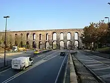 Enfin, et même s’il établit finalement sa résidence à Antioche, Valens se préoccupe de la situation de Constantinople, dont la population sans cesse croissante exige un approvisionnement accru et stable en eau. On lui doit ainsi la construction de l’aqueduc dit « de Valens », encore existant de nos jours, dont l’eau provient en partie de la Forêt de Belgrad, à plus de 100 km de la ville[61].