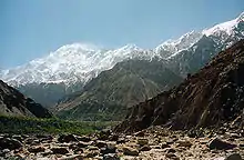 Plusieurs sommets de plus de 6 000 m s'élèvent de part et d'autre de la vallée de la Hunza : le Rakaposhi 7 788 m, l'Ultar Sar 7 388 m, le Bojahagur Duanasir II 7 329 m, le Ghenta Sar 7 090 m, le pic Hunza 6 270 m, le pic Darmyani 6 090 m et le Bubuli Motin 6 000 m.