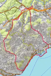 - « Orthodromie entre Vallauris et Cannes », sur fr.distance.to (consulté le ).
