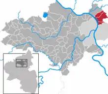 Localisation de la Verbandsgemeinde de Vallendar dans l'arrondissement de Mayen-Coblence