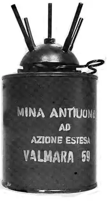 La Valmara 59 est une mine antipersonnel cylindrique italienne. C’est la première de la famille de mines « Valmara » produite par Valsella Meccanotecnica, suivie par la Valmara 69 et la VS-JAP. Le corps de la mine est en plastique avec une tête métallique distinctive à cinq dents. La broche centrale a un trou, pour permettre d’y enfiler un fil-piège. Le corps intérieur de la mine a une charge principale entourée d’environ 1000 cubes d’acier, en dessous desquels se trouve un fil d’acier qui la relie à la base de la mine. Lorsque la mine est déclenchée, une petite charge la propulse dans les airs environ 45 cm avant que le fil d’acier ne soit tendu. La secousse entraîne alors un percuteur dans le détonateur. Une mèche à retardement secondaire déclenche la mine au bout de trois secondes si elle n’a pas explosé après avoir été déclenchée.