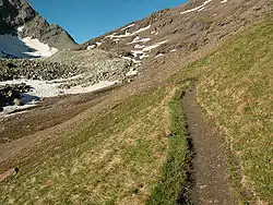 - Le col de Crête sèche, à 2 888 mètres, vers le val de Bagnes