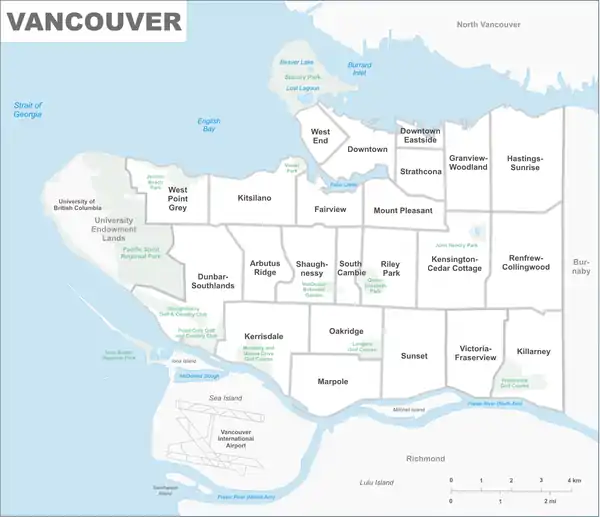 Son nom officiel actuel en anglais est City of Vancouver, à ne pas confondre avec l'ancienne circonscription de Vancouver City (« Cité de Vancouver »).
