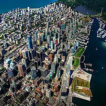 Comportant de nombreux styles architecturaux du XXe siècle (l'hôtel Europe (en) de style Art nouveau, le Marine Building Art déco ou encore le futurisme du Canada Place), la ville évolue au XXIe siècle au rythme de la protection de l'environnement : 250 km de pistes cyclables, plantation de 40 000 arbres ou encore objectif de réduction de 7 % de gaz à effet de serre. L'ancien quartier industriel de Granville, donnant sur la marina, a été réhabilité en zone de loisir[12].