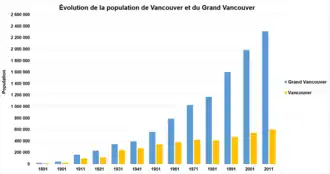 La fusion avec Point Grey et South Vancouver (Vancouver Sud) donna à la cité ses limites finales peu avant qu'elle ne devienne la troisième métropole la plus importante du pays. Le 1er janvier 1929, la ville de Vancouver élargie comptait 228 193 habitants[37].