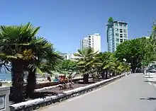 Vancouver possède l'un des plus grands parcs urbains d'Amérique du Nord, le Parc Stanley, qui couvre 4,049 km2[41]. Les montagnes North Shore dominent le paysage de la cité. Les jours dégagés, il est possible d'observer le volcan enneigé mont Baker situé au sud-est dans l’État de Washington, l'île de Vancouver de l’autre côté du détroit de Géorgie de l'ouest au sud-ouest, ainsi que l'île Bowen au nord-ouest[42].