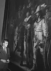La Ronde de nuit de Rembrandt (1642) est l'une des peintures les plus populaires du Rijksmuseum d'Amsterdam. Le 13 janvier 1911, un cuisinier de la marine au chômage tente de le couper avec un couteau, mais ne parvient pas à traverser l'épais vernis du tableau[53],[54]. En 1975, William de Rijk, un enseignant au chômage, coupe des dizaines de lignes en zigzag dans le tableau avec un couteau avant d'être arrêté par les gardes. Après l'événement, il est identifié avec un trouble mental et est envoyé dans un hôpital psychiatrique où il se suicide le 21 avril 1976. Il faut six mois pour restaurer le tableau et il reste encore des traces de coupures[54],[14],[55],[56]. En 1990, un homme jette de l'acide sur le tableau. Les gardes parviennent à le diluer rapidement avec de l'eau pour qu'il ne pénètre que dans la couche de vernis, et la peinture est restaurée à nouveau[54],[57].